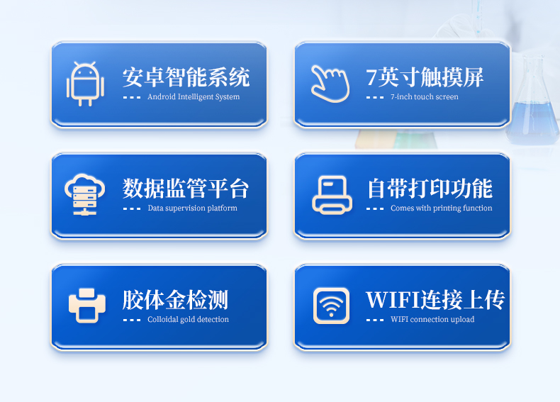 | 標準9通道的光纖檢測結構,有參比校準通道,能實時監控每次測試的有效性.支持96孔和48孔板及其它微孔板檢測; | 檢測不同項目時,儀器自動波長定位.支持10個濾光片, | 隨機固化常規檢測項目,可以隨時追加固化項目及用戶自行修改和添加項目,方便快捷 | 采用7寸LCD觸摸彩色大屏顯示器, 分辨率800*480,能直接96孔整板全屏顯示,顯示內容清晰、完整。 | 全新windows圖形化界面,彩色液晶觸摸屏操作,操作簡捷方便。 | 采用RS232通訊端口;支持外接USB數據線直接與PC機聯接;支持EXCEL格式的數據導出功能;支持多種綜合報告輸出和匯總統計功能 | 支持觸摸屏和PS/2鼠標操作,拼音輸入法; | 支持質控功能,具備即刻法和ELISA法質控;可查看質控結果和質控圖; | 支持內置熱敏打印機,可以打印矩陣整板數據和病人綜合檢測報告;可以聯接外置USB指定型號打印機。 | 采用SD卡數據存儲,滿足“海量”數據存儲的要求,輕松應對正常檢測工作需求; | 通過工作站支持一板6個項目同時檢測; | 支持GPRS遠程數據通訊模塊及網絡通訊模塊; | 采用**U盤自動程序升級功能;簡單快捷. 支持U盤拷貝數據, | 儀器具有定性定量分析功能,可以輸出原始吸光度報告,液相阻斷檢測報告.濃度數據報告,定性分析的陰陽性結果判定報告。 | 采用光源自動開關節能設計,**限度延長光源壽命,具備對光路,機械運動部件等進行自檢和報警功能,確保儀器處于良好的工作狀態。 | 強大的信息管理和綜合報告功能:儀器內置檢測樣品、檢測人員和系統日志數據庫,加強監管追溯力度,支持條件匯總查詢。 | 連接工作站軟件,電腦直接控制儀器的檢測工作,實現數據的實時采集、數據查詢匯總、供應商信息管理等。 |