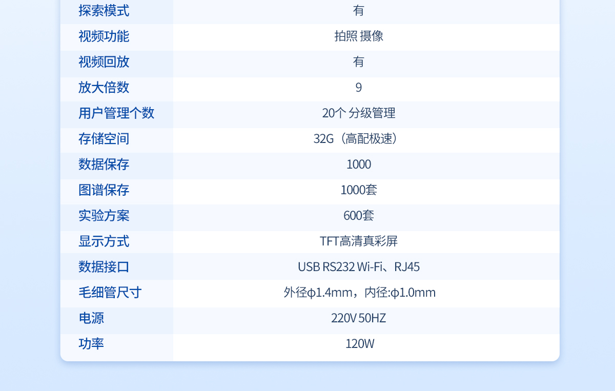 | 溫度范圍: 室溫-400℃ | 檢測方式: 手動 | 處理能力: 4個/批(同時可以做四個樣) | 判斷能力: 視頻目視 | 溫度分辨率:0.1℃ | 升溫速率: 0.1℃--20℃ (200檔 無極可調) | 控溫方式: PID**控溫 爐體全密閉設計 | 加熱方式: 傳導液加熱法或者電熱塊空氣加熱法(選配) | 升溫分辨率:0.1℃ | 升溫速率: 0.1℃/Min-20℃/Min | 準確度: ±0.2℃(<200℃);±0.4℃(>200℃) | 重復性: 0.1℃/Min時熔點重復性±0.1℃ | 校正功能: 具備 | 探索模式: 有 | 視頻回放: 有/有時間水印 | 高清攝像頭:觀察樣品熔融狀態 | 放大倍數: ≥10 | 用戶管理個數:30個以上 分級三級管理 | 存儲空間:32G硬盤,≥2G內存 | 試驗方法:有 | 數據保存:有 | 圖譜保存:200 | 內存擴展:可以 | 網 絡 :無線WIFI | 顯示方式:8寸高清彩屏 | 數據接口:USB,網絡WiFi接口,RS232 | 數據真實性:防篡改功能 | 數據導出:可用U盤導出 | 數據輸出形式:PDF格式和EXCL數據 | 數據溢出提醒:提前自動提醒 | 打印機:選配激光打印機或熱敏/針式(兼容) | 毛細管尺寸: 外徑φ1.4mm,內徑:φ1.0mm | 電源:220V 50HZ 功率:120W |