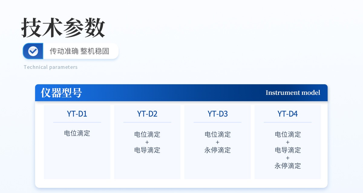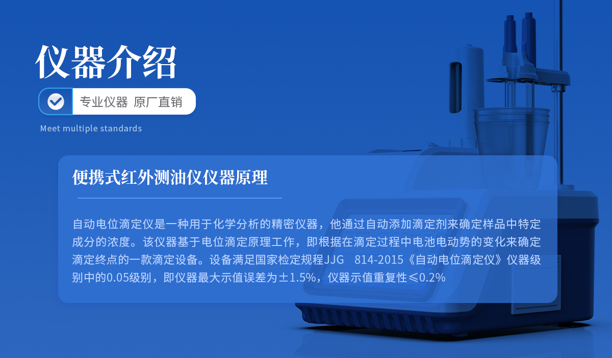 | 自動電位滴定儀是一種用于化學分析的精密儀器,他通過自動添加滴定劑來確定樣品中特定成分的濃度。該儀器基于電位滴定原理工作,即根據在滴定過程中電池電動勢的變化來確定滴定終點的一款滴定設備。設備滿足國家檢定規程JJG 814-2015《自動電位滴定儀》儀器級別中的0.05級別,即儀器**示值誤差為±1.5%,儀器示值重復性≤0.2% |